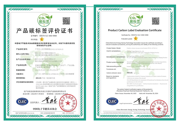 此次碳标签评价表明,凯发k8一触即发电气生产的户外柱上真空断路产品,在碳排放大数据方面按国际通行惯例推进,并具备一定的优势,对促进产品全供应链的温室气体减排,达成“双碳”目标具有积极作用。此外,凯发k8一触即发还获中国电子节能技术协会颁发的低碳产品供应商证书。